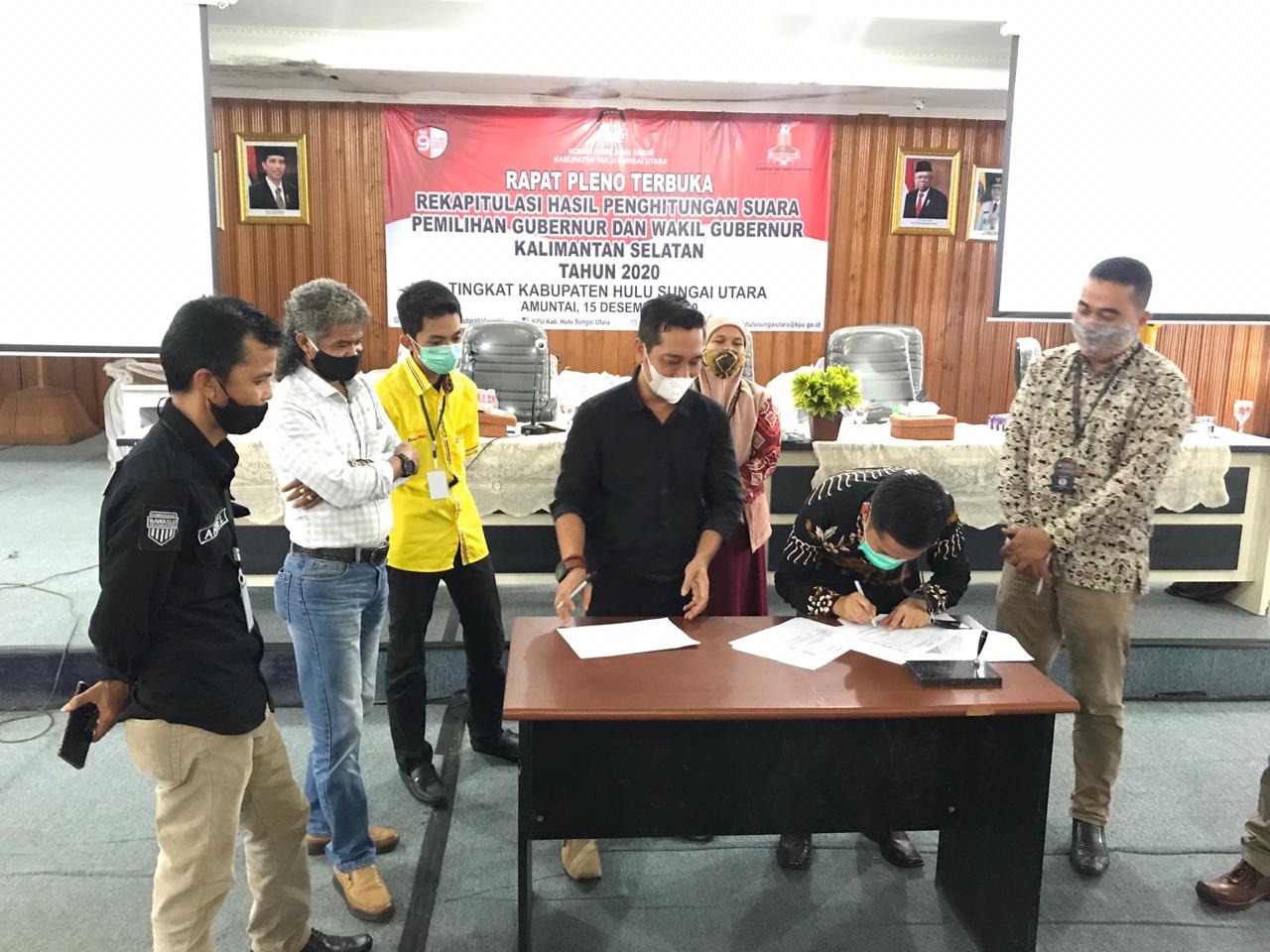 \n\n\n\nRapat Pleno Terbuka Rekapitulasi Penghitungan Suara Pada Pemilihan Gubernur dan Wakil Gubernur Kalimantan Selatan Tahun 2020 di Kab HSU berlangsung dengan aman, damai dan lancar. (Tim Humas Bawaslu Kab. HSU)