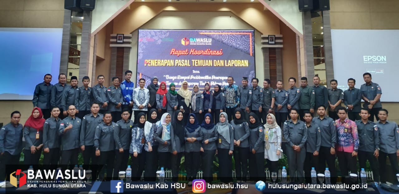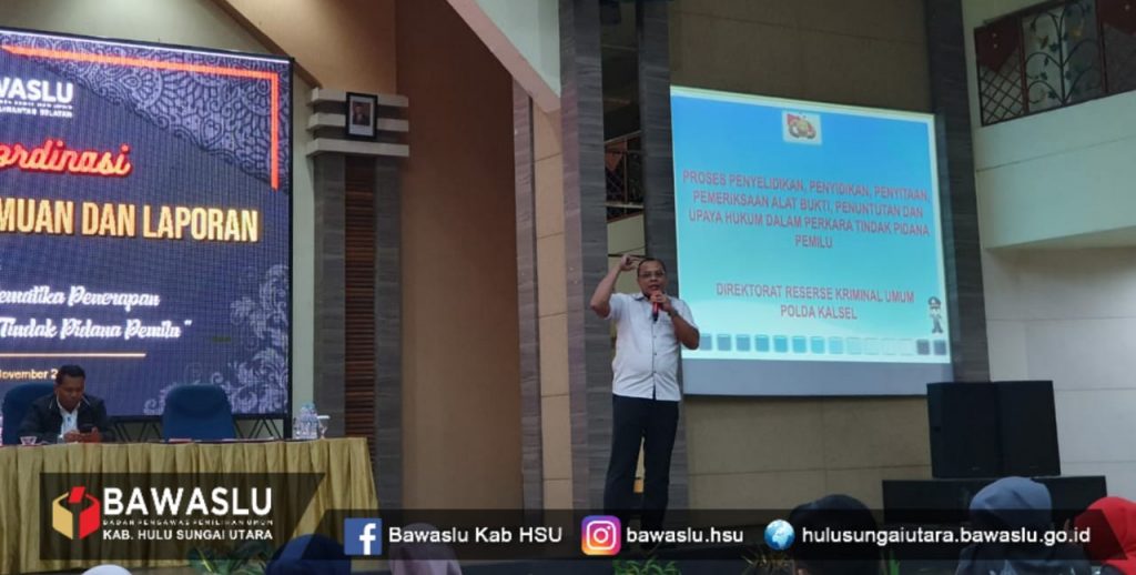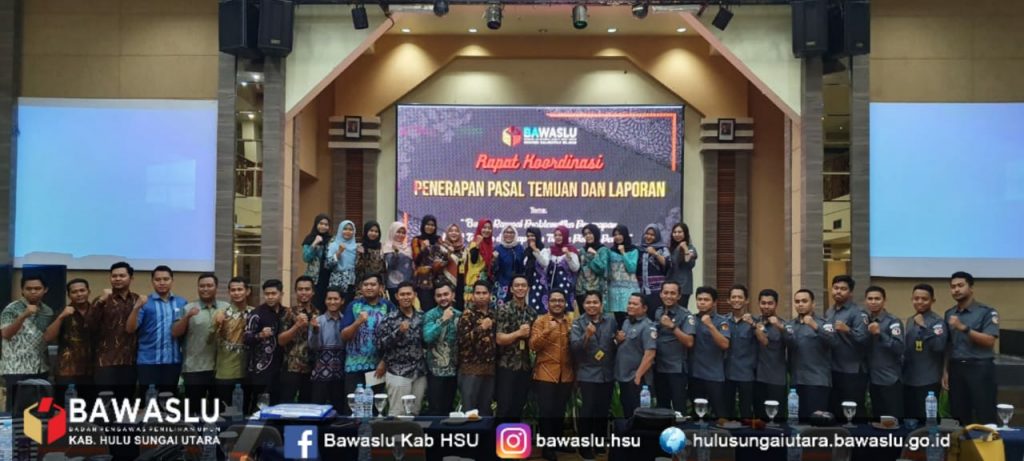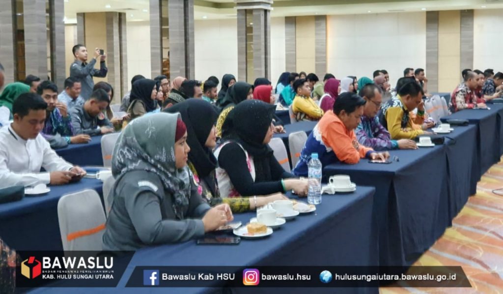 BAWASLU Hulu Sugai Utara: Dengan mengusung tema “ Bunga rampai Problematika Penerapan pasal temuan dan laporan tindak pidana pemilu” yang digelar oleh Bawaslu provinsi Kalimantan selatan di hotel aria barito Banjarmasin tanggal 25 November 2019