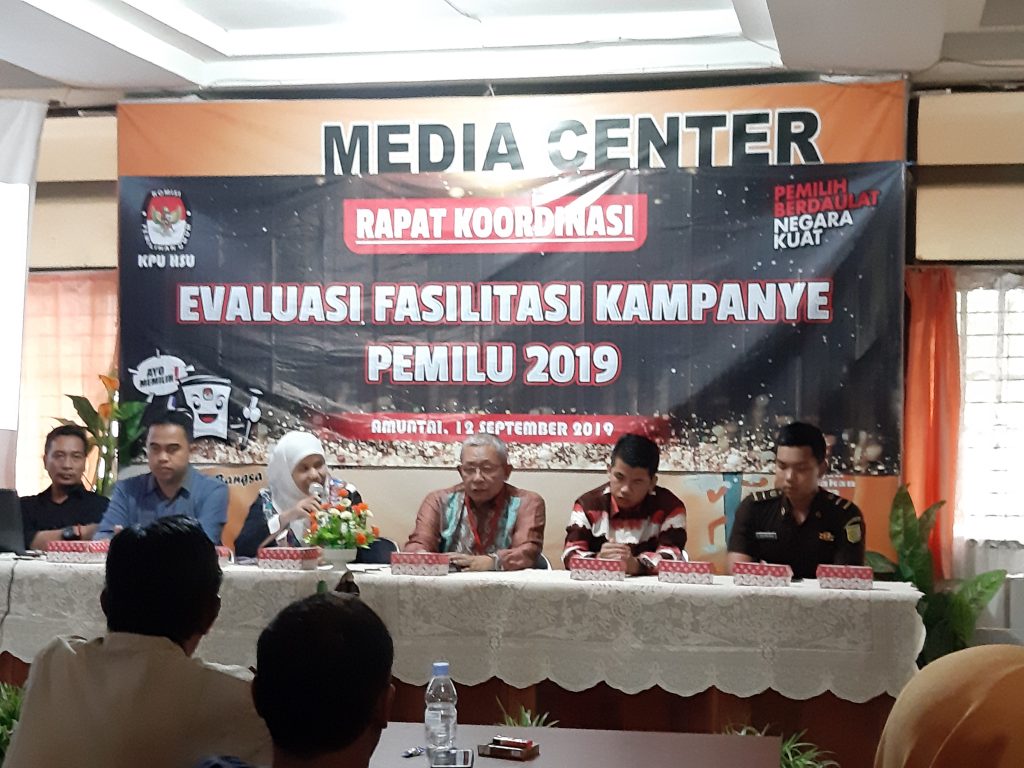 \n\n\n\nDalam Sambutannya Ketua KPU Mei Saputri menyampaikan bahwa evaluasi ini merupakan tindak lanjut dari surat KPU RI Nomor: 1000/PL.01.6-SD/KPU/VII/2019 tentang kegiatan evaluasi fasilitas kampanye pemilu 2019, ia bersyukur bahwa tidak ada hal yang terlalu menghambat" Alhamdulillah pelaksanaan kampanye, pemilu 2019 kemarin di Kabupaten Hulu Sungai Utara berjalan lancar dan dalam hal pemasangan APK secara umum telah sesuai dengan ketentuan." Ungkapnya.